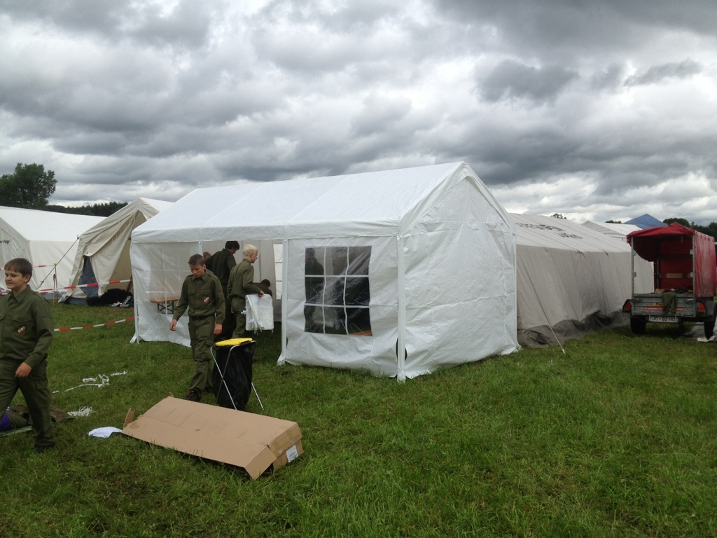 Zeltaufbau im Lager