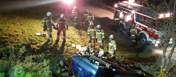 Am 20. Oktober führten wir eine Übung im Bereich Sieglreitweg durch. Annahme war ein Fahrzeuabsturz in welchem noch Personen eingeklemmt waren. Es galt das Fahrzeug gegen ein weiteres Abrutschen zu sichern sowie die Beleuchtung und den Brandschutz sicherzustellen. In weiterer Folge wurde eine Person mittels hydraulischem Rettungsgerät aus dem Fahrzeug befreit.