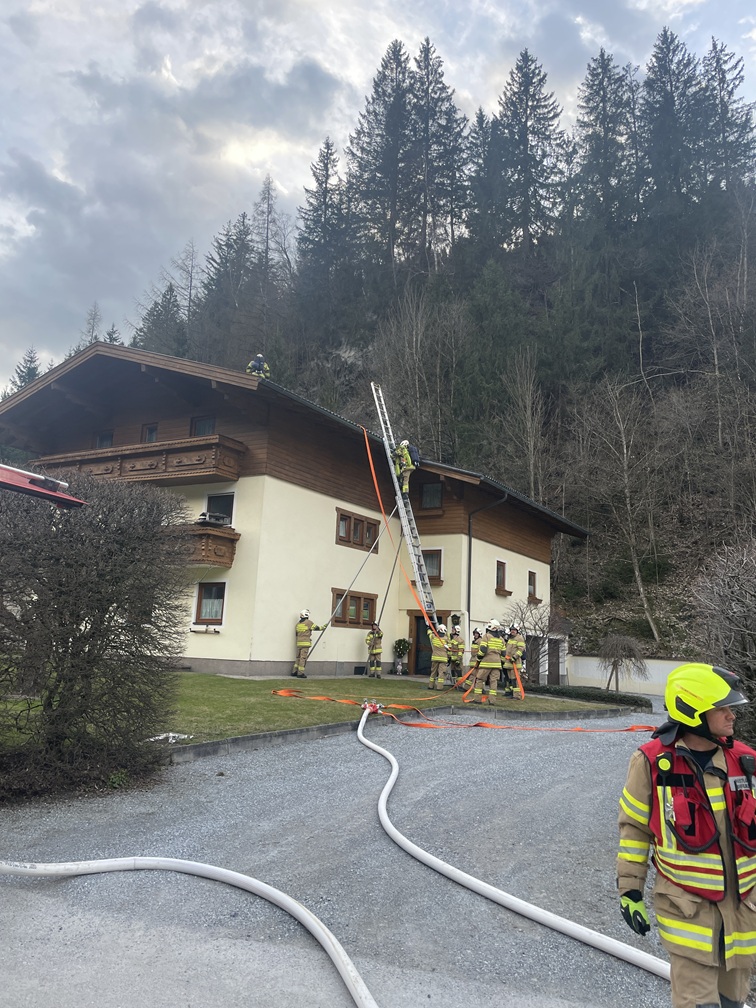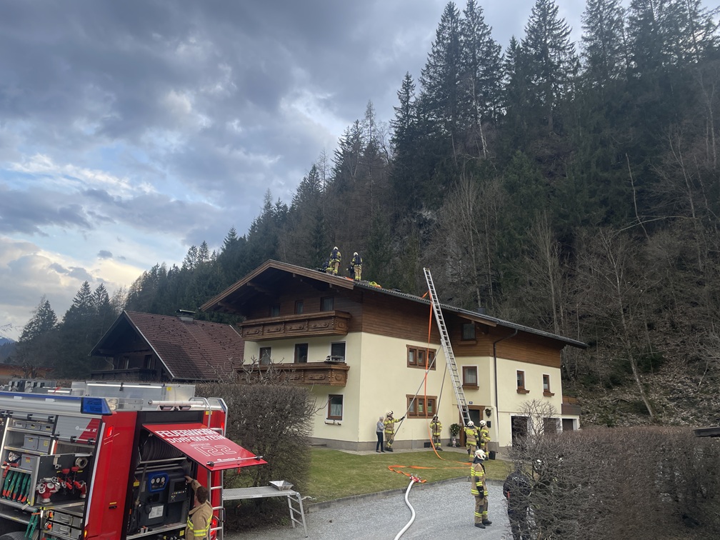 An der Einsatzstelle wurde umgehend ein Brandschutz durch einen Atemschutztrupp am Dach errichtet. Aus dem Kamin war ein Flammenaustritt sichtbar. Der Zugang zum Dach wurde mittels der dreiteiligen Schiebeleiter hergestellt. In Abstimmung mit der Polizei wurde der Rauchfangkehrer an die Einsatzstelle beordert. Wir kontrollierten vorerst den gesamten Bereich des Kamin.