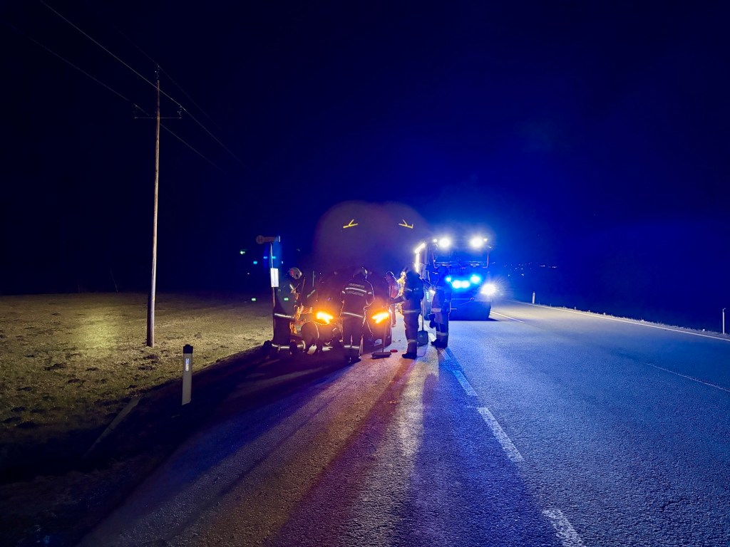 Nach einer Kollision mit einem Wild traten bei einem PKW Betriebsmittel aus, welche unsererseits umgehend gebunden wurden. Ebenso war die Fahrbahn stark verunreinigt – auch diese wurde gereinigt. Nachdem die Arbeiten abgeschlossen waren, konnte die Straße für den Verkehr wieder freigegeben und der Einsatz beendet werden.