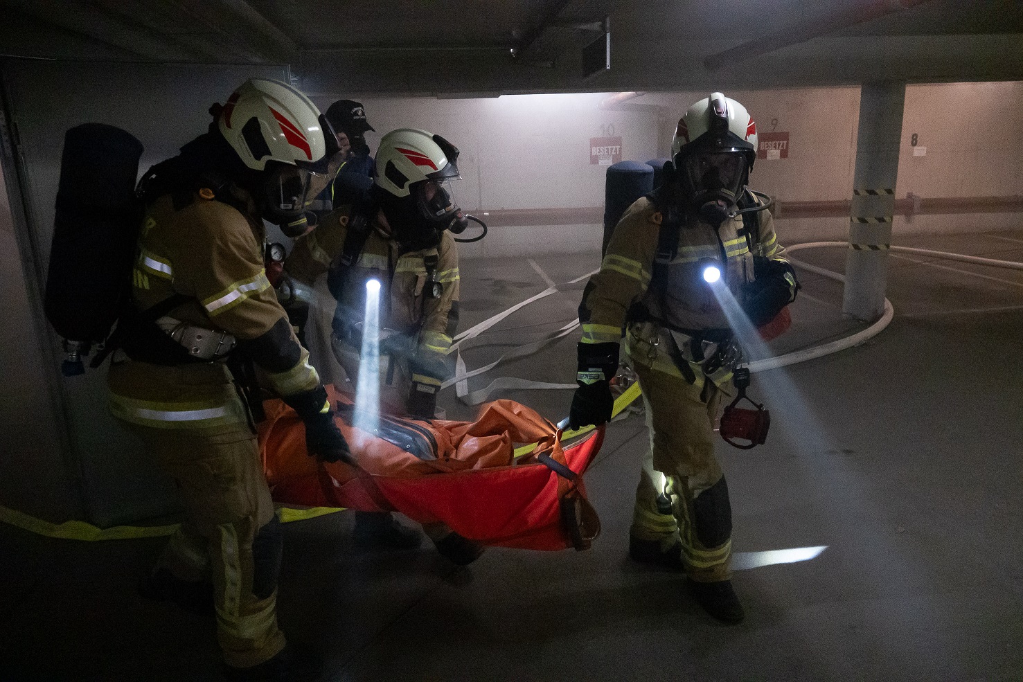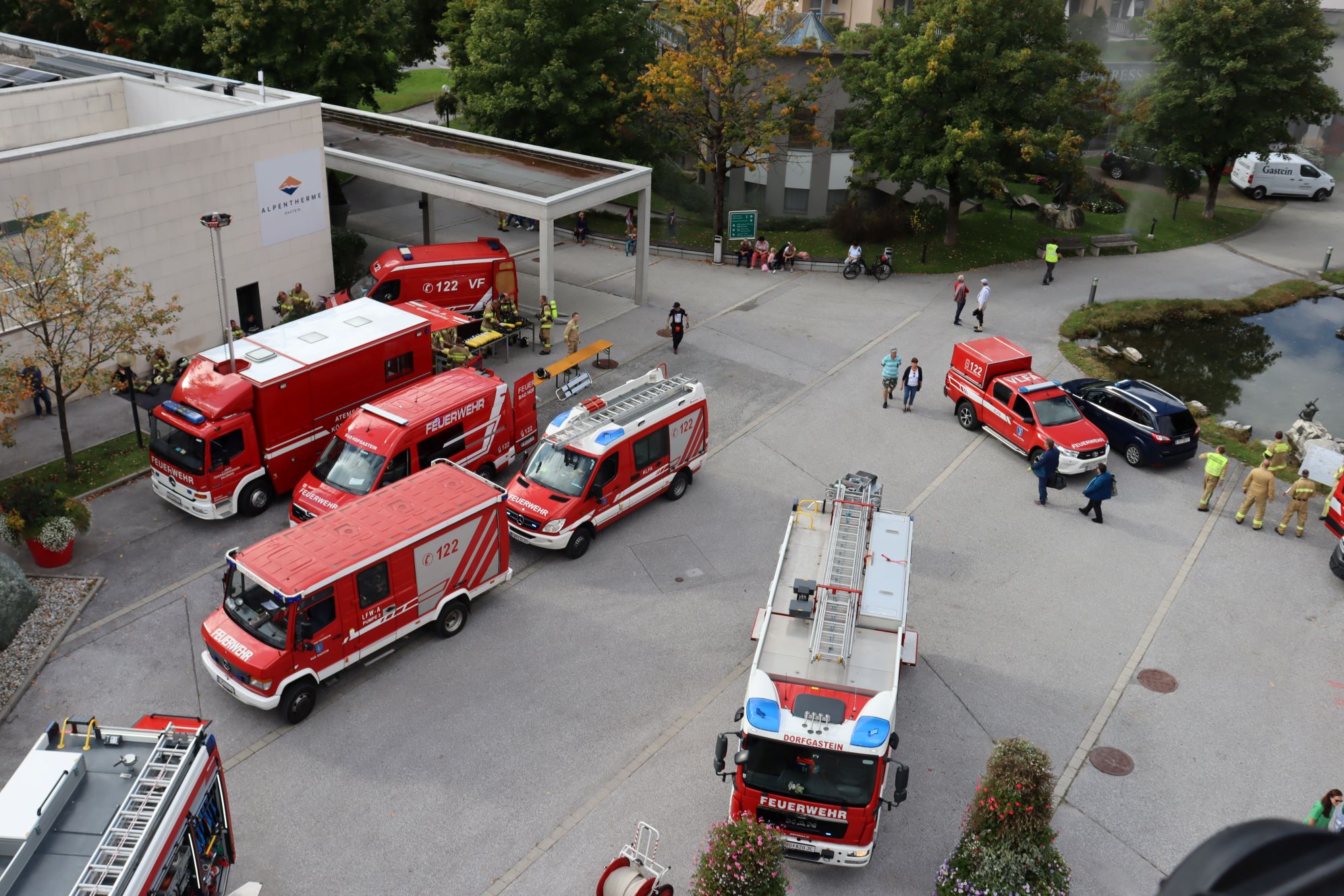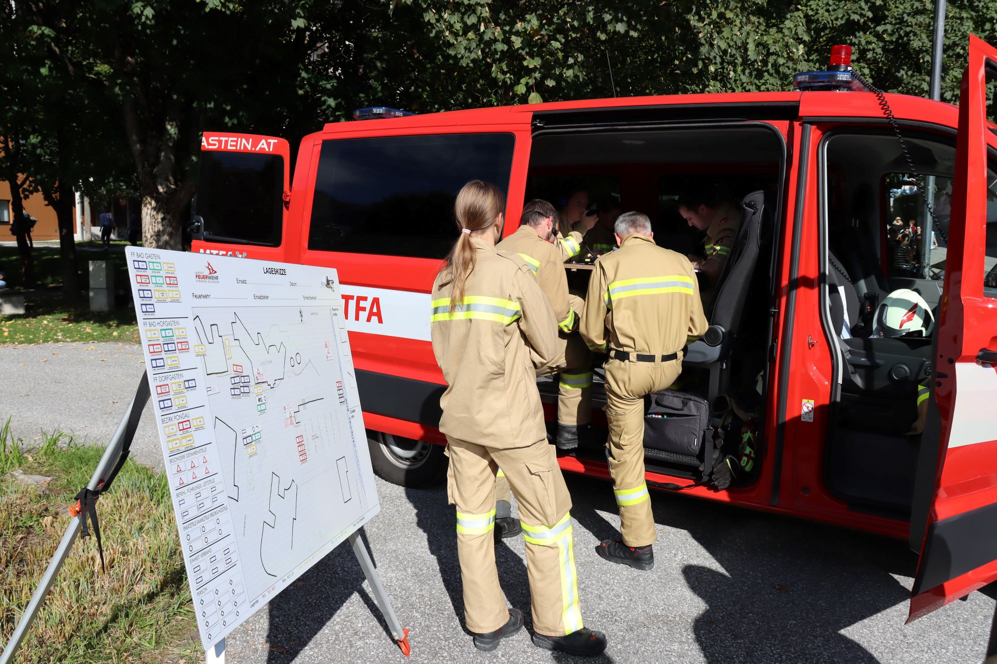 Aufgrund der ersten Lageerkundung erhöhte die Übungsleitung die Alarmstufe auf 3 und forderte die Feuerwehren Bad Hofgastein und Bad Gastein nach. Das Rote Kreuz bereitete parallel den MANV-Alarm (Massenanfall von Verletzten) vor.