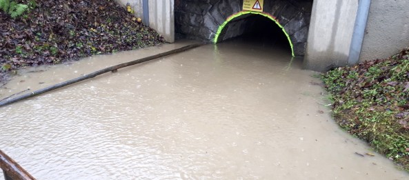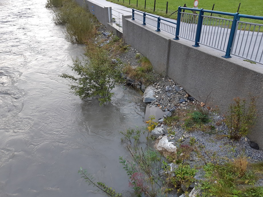 Starke Regenfälle von Donnerstag auf Freitag verschärften die Situation nach den Unwetterschäden vom Wochenende zunehmends. Das Hauptproblem bildete der noch immer beschädigte Kanal, welcher von der verheerenden Mühlbachmure am Samstag getroffen wurde.