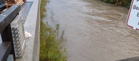 Wir sperrten schließlich sämtliche Promenanden entlang der Gasteiner Ache und kontrollierten die Pumpstellen des Hochwasserschutzes. Die Beinhäuslbrücke wurde aufgrund der Überflutung der Unterführung gesperrt. Ein mobiles Absperrelement des Hochwasserschutzes wurde im Bereich Salamanderstraße sowie Wiesenstraße eingesetzt. Nach den Kontroll- und Absperrmaßnahmen pendelte sich der Wasserstand auf hohem Niveau ein, blieb aber Konstant. Somit waren für uns keine weiteren Schritte erforderlich.