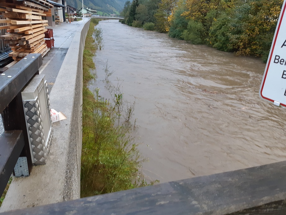 Aufgrund des ergiebigen Niederschlages stieg der Pegelstand der Gasteiner Ache in der Nacht vom 27. auf den 28. Oktober in kürzester Zeit extrem an und überstieg die Meldegrenze. Nach Kontrollen in der Früh wurde schließlich Gesamtalarm für die Feuerwehr ausgelöst. Der Hochwasserschutz wurde entlang der Gasteiner Ache aufgebaut. Die Pumpen sowie die Mobilelemente bleiben vorerst in Stellung. Die Lage wird weiterhin beobachtet.