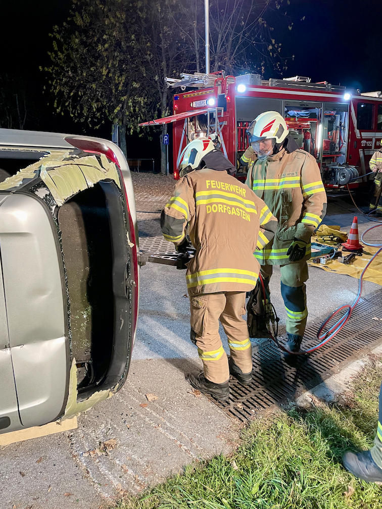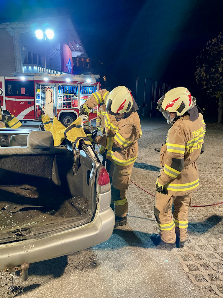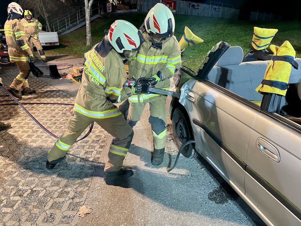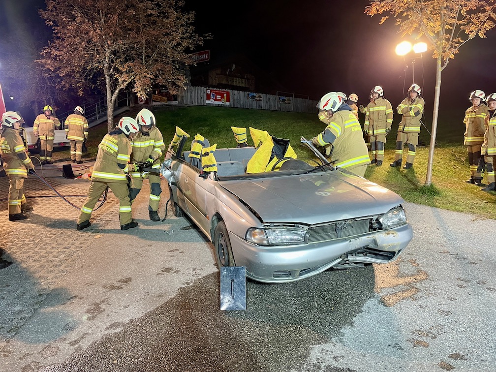 Nach einem dreistündigen Theorievortrag im Schulungsraum der Feuerwehr Dorfgastein ging’s nach einer kurzen Stärkung raus ins Gelände zur Fa. Kraxner. Dort konnte das neu erworbene Wissen direkt in die Praxis umgesetzt werden. An vier PKW’s wurden verschiedene Unfallszenarien nachgestellt, die die Teilnehmer nach gezielten Vorgaben bewältigen mussten. Die Aufgabenstellung war bei allen vier Fahrzeugen die Selbe: Wie rettet man verletze Personen so rasch als möglich und gleichzeitig so schonend wie möglich aus verunfallten und deformierten PKW’s. Da die richtige einsetzbare Rettungstechnik je nach Einsatz variiert, wurden die verschiedenen Varianten unter der Anweisung vom Seminartrainer durchgeführt und hinsichtlich deren Effizienz verglichen. Hier offenbarten sich dann auch einige wichtige Neuigkeiten für die teilnehmenden Einsatzkräfte.