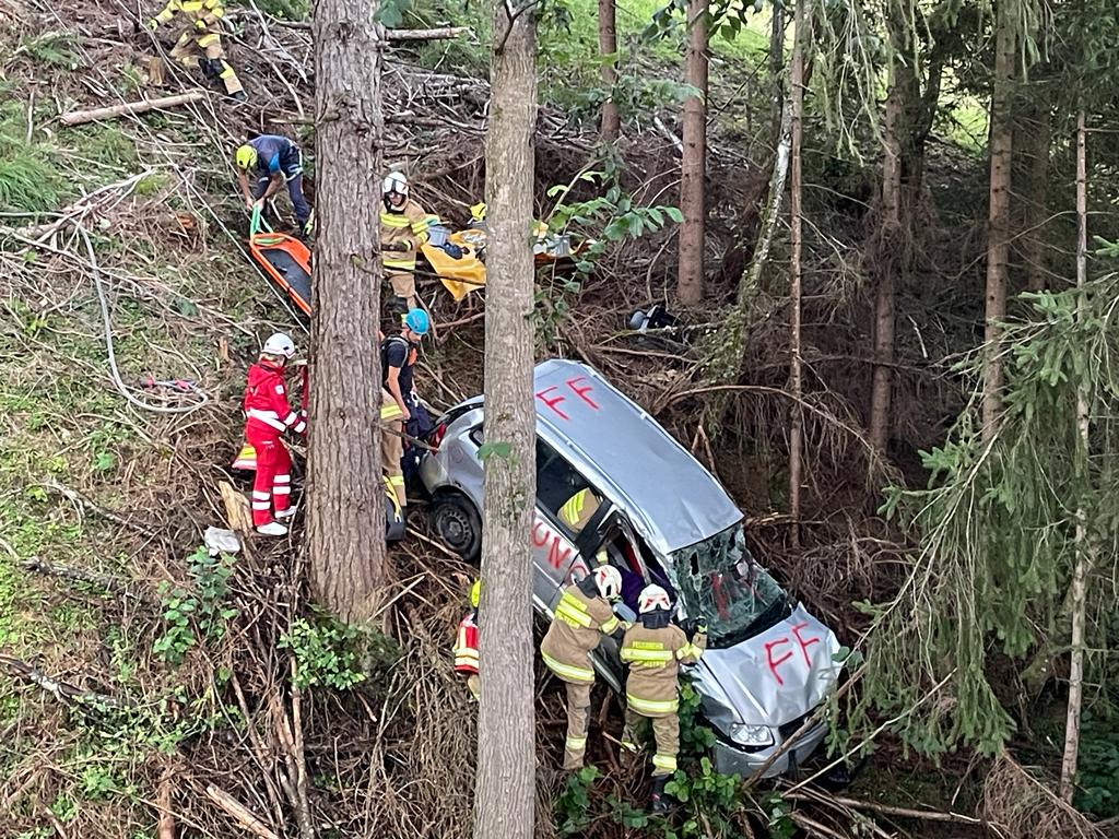 Die Bergrettung rückte dazu als erstes ins Einsatzgebiet aus und lokalisierte die verletzte Person und begann somit mit der Erstversorgung. Danach rückte die Feuerwehr zu den bestätigten Koordinaten an. Seitens der Feuerwehr wurde am Forstweg eine gemeinsame Einsatzleitung errichtet. Fortan wurden die Gruppen der Feuerwehr zu folgenden Aufgaben eingeteilt: Sichern der Baumwurze, Entfernung der Pfählung soweit möglich und nach Abstimmung mit den Sanitätern der Bergrettung sowie Ausleuchtung der Einsatzstelle. Nachdem unsere Aufgaben erledigt wurden, übernahm wieder die Bergrettung den Abtransport der verletzten Person und konnte diesen in kurzer Zeit bewerkstelligen.